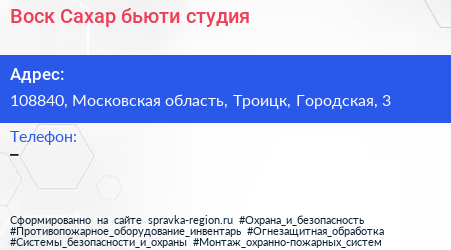 Воск & Сахар, бьюти-студия по адресу 108840, Московская область, Троицк, Городская, 3 в дальнейшем Организация, размещена в следующих категориях: