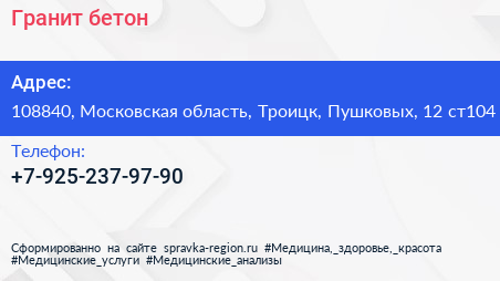 Гранит-бетон по адресу 108840, Московская область, Троицк, Пушковых, 12 ст104 в дальнейшем Организация, размещена в следующих категориях: