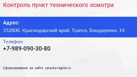 Контроль, пункт технического осмотра по адресу 352800, Краснодарский край, Туапсе, Бондаренко, 14 в дальнейшем Организация, размещена в следующих категориях: