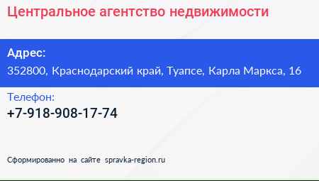 Центральное, агентство недвижимости по адресу 352800, Краснодарский край, Туапсе, Карла Маркса, 16 в дальнейшем Организация, размещена в следующих категориях: