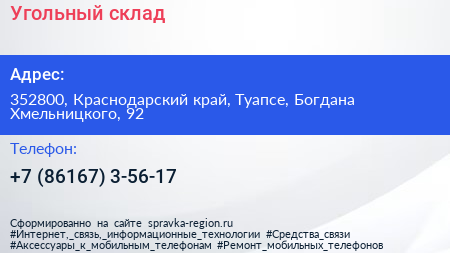 Угольный склад по адресу 352800, Краснодарский край, Туапсе, Богдана Хмельницкого, 92 в дальнейшем Организация, размещена в следующих категориях: