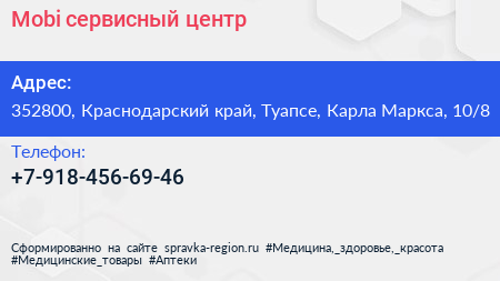 Mobi, сервисный центр по адресу 352800, Краснодарский край, Туапсе, Карла Маркса, 10/8 в дальнейшем Организация, размещена в следующих категориях: