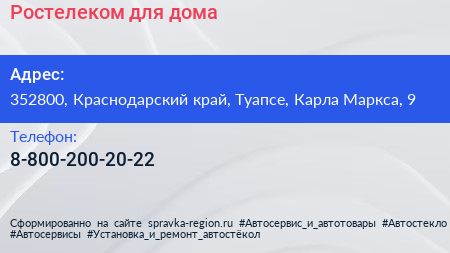 Ростелеком для дома по адресу 352800, Краснодарский край, Туапсе, Карла Маркса, 9 в дальнейшем Организация, размещена в следующих категориях: