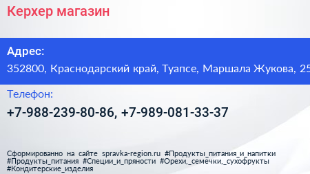 Керхер, магазин по адресу 352800, Краснодарский край, Туапсе, Маршала Жукова, 25 в дальнейшем Организация, размещена в следующих категориях: