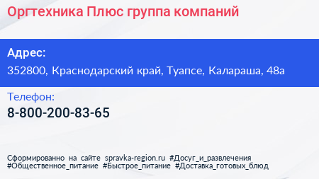 Оргтехника Плюс, группа компаний по адресу 352800, Краснодарский край, Туапсе, Калараша, 48а в дальнейшем Организация, размещена в следующих категориях: