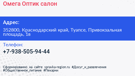 Омега Оптик, салон по адресу 352800, Краснодарский край, Туапсе, Привокзальная площадь, 1в в дальнейшем Организация, размещена в следующих категориях: