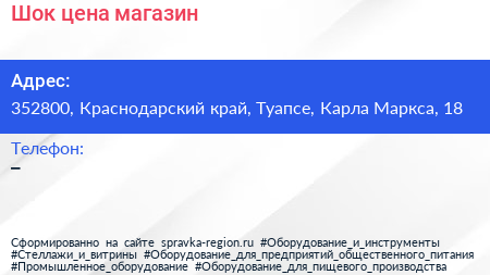 Шок-цена, магазин по адресу 352800, Краснодарский край, Туапсе, Карла Маркса, 18 в дальнейшем Организация, размещена в следующих категориях: