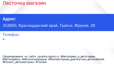 Ласточка, магазин по адресу 352800, Краснодарский край, Туапсе, Фрунзе, 28 в дальнейшем Организация, размещена в следующих категориях: