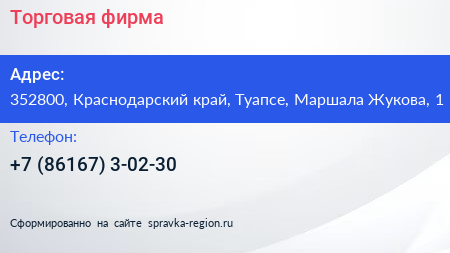 Торговая фирма по адресу 352800, Краснодарский край, Туапсе, Маршала Жукова, 1 в дальнейшем Организация, размещена в следующих категориях: