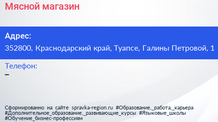 Мясной магазин по адресу 352800, Краснодарский край, Туапсе, Галины Петровой, 1 в дальнейшем Организация, размещена в следующих категориях:
