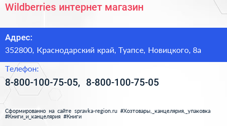 Wildberries, интернет-магазин по адресу 352800, Краснодарский край, Туапсе, Новицкого, 8а в дальнейшем Организация, размещена в следующих категориях: