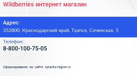 Wildberries, интернет-магазин по адресу 352800, Краснодарский край, Туапсе, Сочинская, 5 в дальнейшем Организация, размещена в следующих категориях: