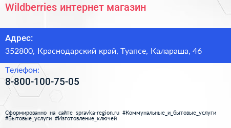 Wildberries, интернет-магазин по адресу 352800, Краснодарский край, Туапсе, Калараша, 46 в дальнейшем Организация, размещена в следующих категориях:
