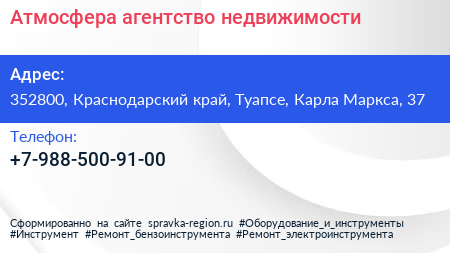Атмосфера, агентство недвижимости по адресу 352800, Краснодарский край, Туапсе, Карла Маркса, 37 в дальнейшем Организация, размещена в следующих категориях: