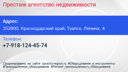 Престиж, агентство недвижимости по адресу 352800, Краснодарский край, Туапсе, Ленина, 4 в дальнейшем Организация, размещена в следующих категориях: