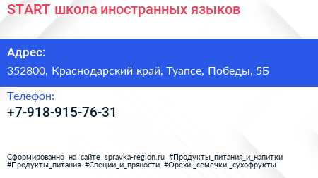 START, школа иностранных языков по адресу 352800, Краснодарский край, Туапсе, Победы, 5Б в дальнейшем Организация, размещена в следующих категориях: