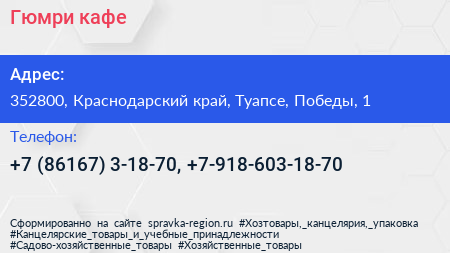 Гюмри, кафе по адресу 352800, Краснодарский край, Туапсе, Победы, 1 в дальнейшем Организация, размещена в следующих категориях:
