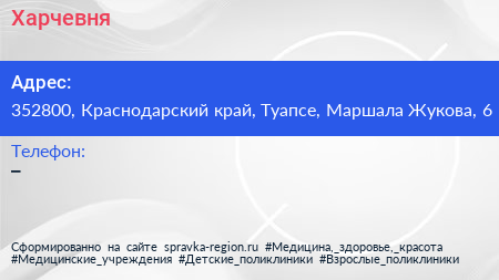 Харчевня по адресу 352800, Краснодарский край, Туапсе, Маршала Жукова, 6 в дальнейшем Организация, размещена в следующих категориях: