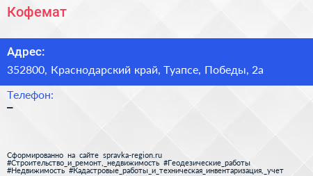 Кофемат по адресу 352800, Краснодарский край, Туапсе, Победы, 2а в дальнейшем Организация, размещена в следующих категориях: