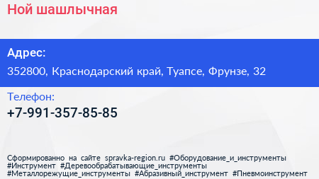 Ной, шашлычная по адресу 352800, Краснодарский край, Туапсе, Фрунзе, 32 в дальнейшем Организация, размещена в следующих категориях: