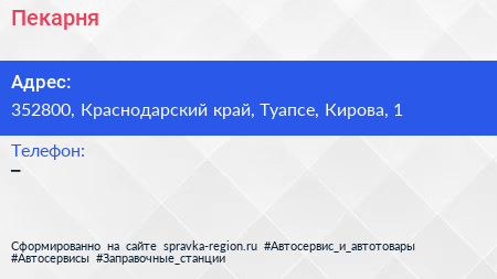 Пекарня по адресу 352800, Краснодарский край, Туапсе, Кирова, 1 в дальнейшем Организация, размещена в следующих категориях: