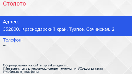 Столото по адресу 352800, Краснодарский край, Туапсе, Сочинская, 2 в дальнейшем Организация, размещена в следующих категориях: