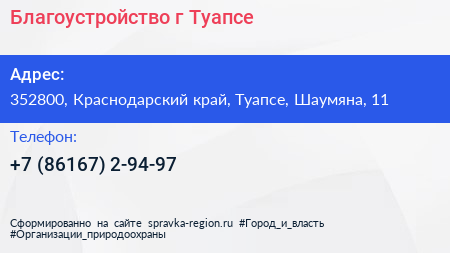Благоустройство г. Туапсе по адресу 352800, Краснодарский край, Туапсе, Шаумяна, 11 в дальнейшем Организация, размещена в следующих категориях: