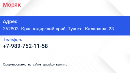Моряк по адресу 352803, Краснодарский край, Туапсе, Калараша, 23 в дальнейшем Организация, размещена в следующих категориях: