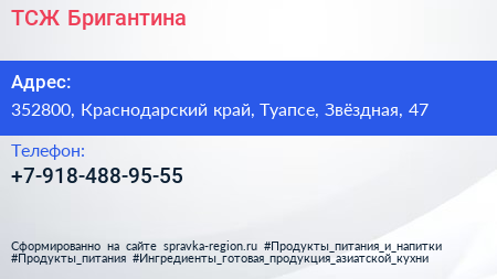 ТСЖ Бригантина по адресу 352800, Краснодарский край, Туапсе, Звёздная, 47 в дальнейшем Организация, размещена в следующих категориях: