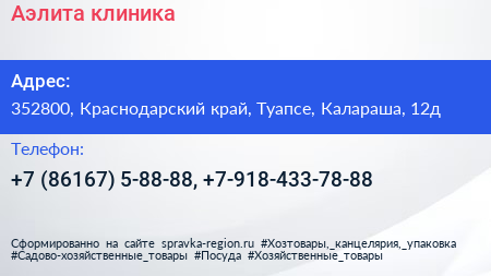 Аэлита, клиника по адресу 352800, Краснодарский край, Туапсе, Калараша, 12д в дальнейшем Организация, размещена в следующих категориях: