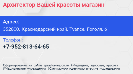 Архитектор Вашей красоты, магазин по адресу 352800, Краснодарский край, Туапсе, Гоголя, 6 в дальнейшем Организация, размещена в следующих категориях: