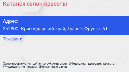 Каталея, салон красоты по адресу 352800, Краснодарский край, Туапсе, Фрунзе, 61 в дальнейшем Организация, размещена в следующих категориях: