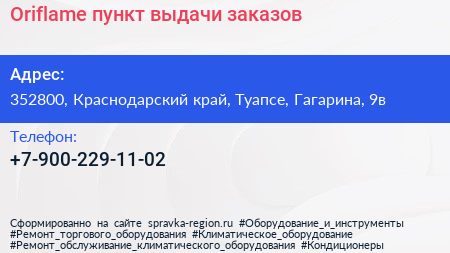 Oriflame, пункт выдачи заказов по адресу 352800, Краснодарский край, Туапсе, Гагарина, 9в в дальнейшем Организация, размещена в следующих категориях: