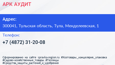 АРК-АУДИТ по адресу 300041, Тульская область, Тула, Менделеевская, 1 в дальнейшем Организация, размещена в следующих категориях: