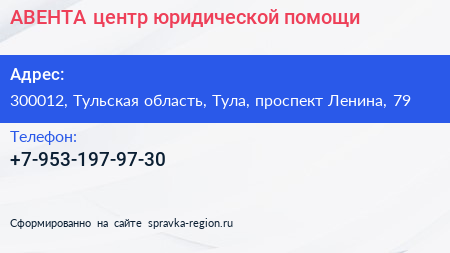 АВЕНТА, центр юридической помощи по адресу 300012, Тульская область, Тула, проспект Ленина, 79 в дальнейшем Организация, размещена в следующих категориях: