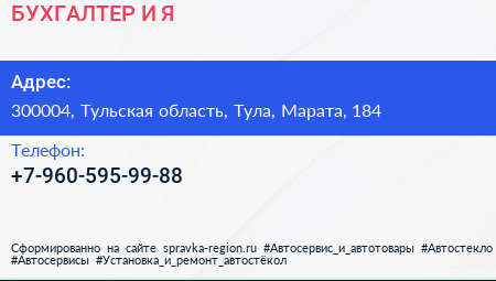 БУХГАЛТЕР И Я по адресу 300004, Тульская область, Тула, Марата, 184 в дальнейшем Организация, размещена в следующих категориях:
