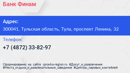 Банк Финам по адресу 300041, Тульская область, Тула, проспект Ленина, 32 в дальнейшем Организация, размещена в следующих категориях: