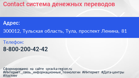 Contact, система денежных переводов по адресу 300012, Тульская область, Тула, проспект Ленина, 81 в дальнейшем Организация, размещена в следующих категориях: