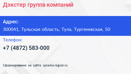 Дэкстер, группа компаний по адресу 300041, Тульская область, Тула, Тургеневская, 50 в дальнейшем Организация, размещена в следующих категориях: