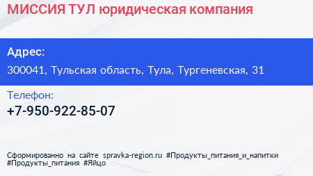МИССИЯ ТУЛ, юридическая компания по адресу 300041, Тульская область, Тула, Тургеневская, 31 в дальнейшем Организация, размещена в следующих категориях: