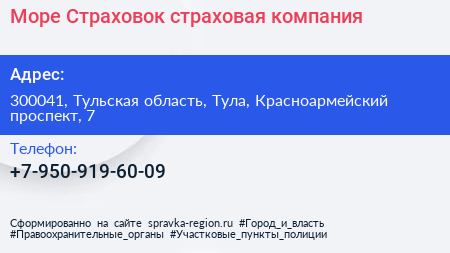 Море Страховок, страховая компания по адресу 300041, Тульская область, Тула, Красноармейский проспект, 7 в дальнейшем Организация, размещена в следующих категориях: