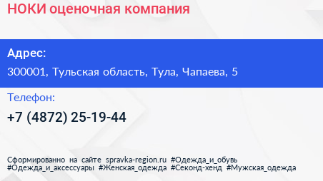 НОКИ, оценочная компания по адресу 300001, Тульская область, Тула, Чапаева, 5 в дальнейшем Организация, размещена в следующих категориях: