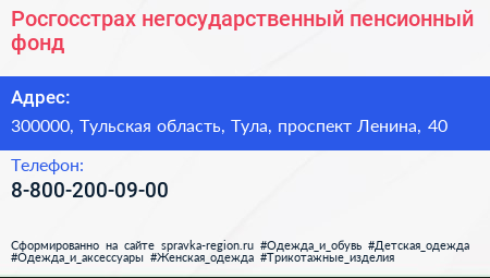 Росгосстрах, негосударственный пенсионный фонд по адресу 300000, Тульская область, Тула, проспект Ленина, 40 в дальнейшем Организация, размещена в следующих категориях: