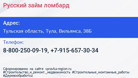 Русский займ, ломбард по адресу Тульская область, Тула, Вильямса, 38Б в дальнейшем Организация, размещена в следующих категориях: