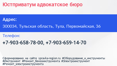 Юстприватум, адвокатское бюро по адресу 300034, Тульская область, Тула, Первомайская, 36 в дальнейшем Организация, размещена в следующих категориях: