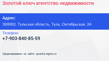 Золотой ключ, агентство недвижимости по адресу 300002, Тульская область, Тула, Октябрьская, 24 в дальнейшем Организация, размещена в следующих категориях: