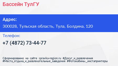 Бассейн, ТулГУ по адресу 300028, Тульская область, Тула, Болдина, 120 в дальнейшем Организация, размещена в следующих категориях: