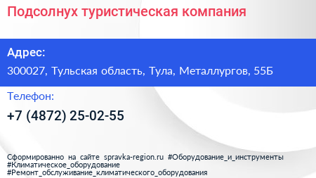Подсолнух, туристическая компания по адресу 300027, Тульская область, Тула, Металлургов, 55Б в дальнейшем Организация, размещена в следующих категориях: