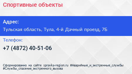 Спортивные объекты по адресу Тульская область, Тула, 4-й Дачный проезд, 7Б в дальнейшем Организация, размещена в следующих категориях: