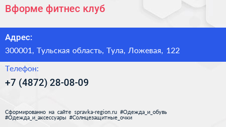 #Вформе, фитнес-клуб по адресу 300001, Тульская область, Тула, Ложевая, 122 в дальнейшем Организация, размещена в следующих категориях: